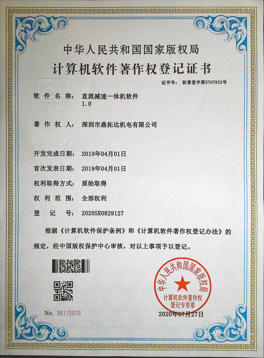 直流減速一體機(jī)軟件證書